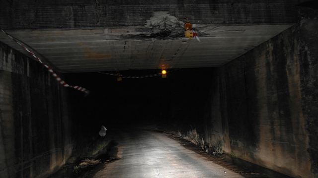 Como se aprecia na imaxe a ponte da vía do tren en Ribas Pequenas sufriu un percance, seguramente polo impacto dalgún vehículo que non mediu ben o alto da carga.