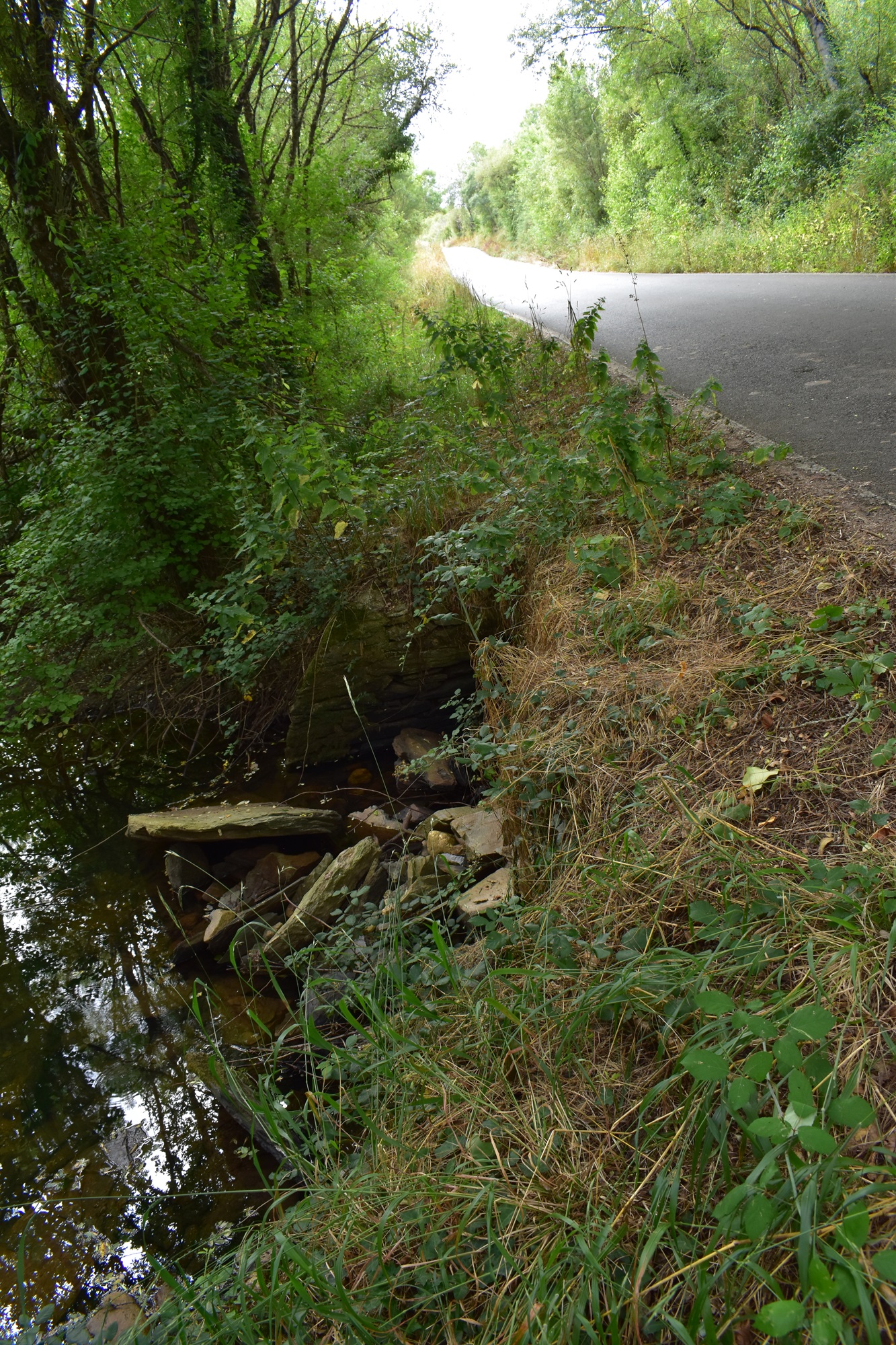En concreto dende o cruce á casa da Marina, xusto onde está o letreiro de Piño. Este tramo botaron grava nos baches fondos e logo unha capa de grava mais fina por riba.